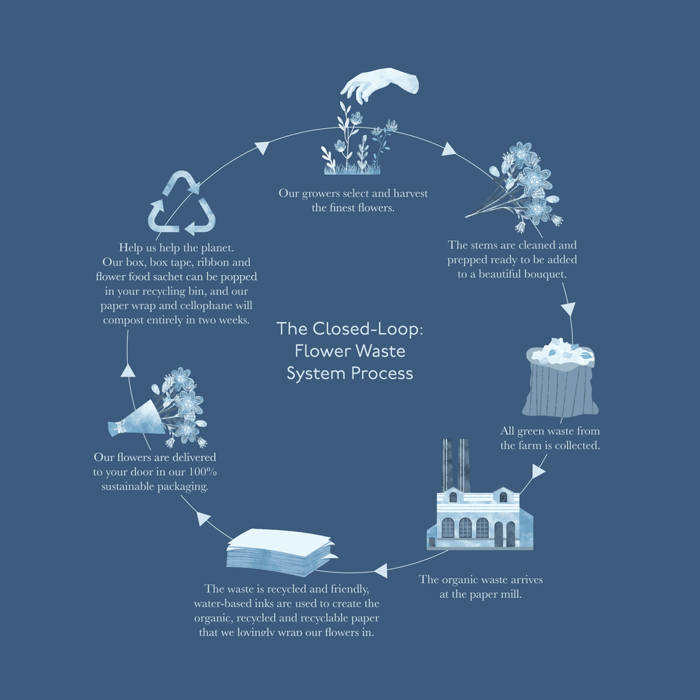 We’re taking accountability of our green waste through finding innovative ways to reuse it. For some time we have been taking ownership of the green waste which is created as our flowers are grown and trimmed, using the off-cuts to create the paper in which we send our bouquets. In doing so, we created the world’s first closed-loop flower waste system.