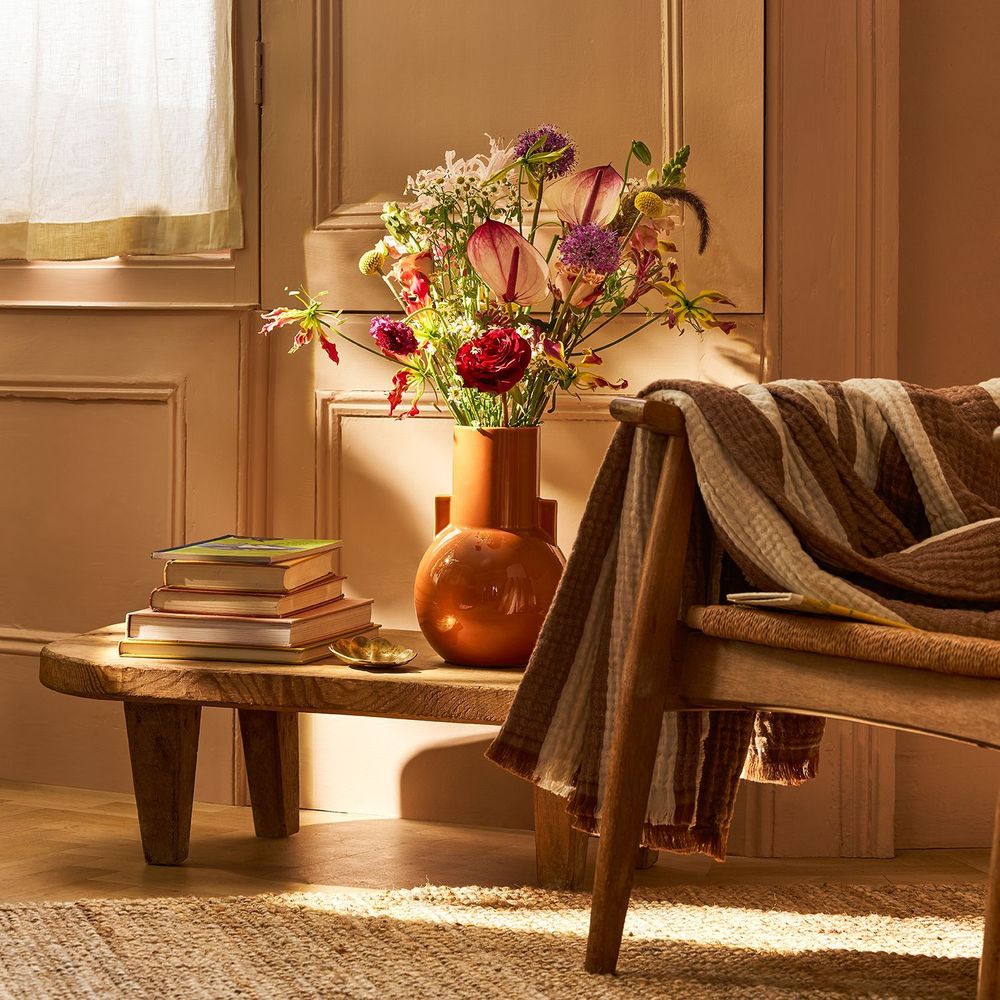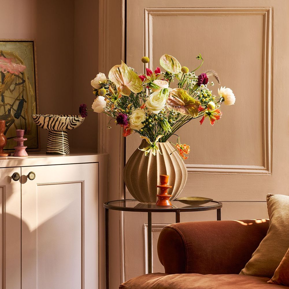 “Flowers bring me such joy. If I ever get kicked out of telly, I’d love to be a florist. The inspiration for this collection was drawn from my own love of flowers, and what I look for when I’m buying a bouquet. I like things quite sculptural and wild, and love decanting stems into different vases to really make the most of every flower that’s in my home.”