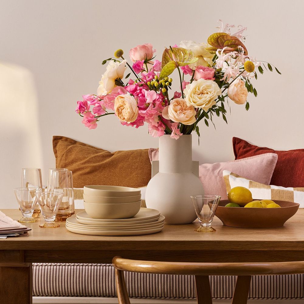 A curated range of bouquets, designed by Stacey Dooley and inspired by her love of flowers. Sculptural and wild, each bouquet features seasonal favourites hand-selected by Stacey for their beauty and style. Enjoy your flowers together as a statement arrangement, or decant them into bud vases to let each bloom shine beautifully on its own.